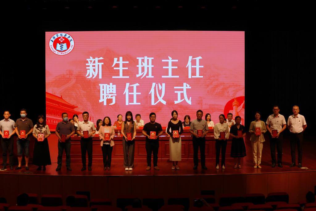 徐营副院长宣读2022级新生班主任聘任名单。陈云飞书记、潘巍巍副院长为班主任颁发聘书。