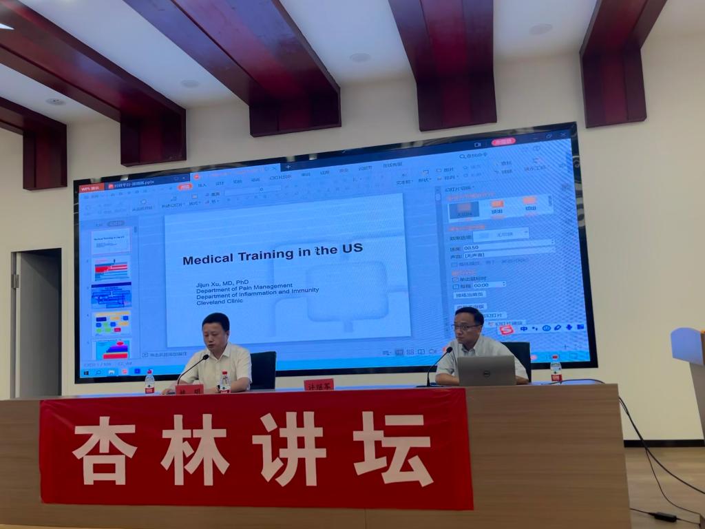 新一期“杏林讲坛”在仁心楼党员教育基地培训教室举行。美国德克萨斯大学神经科学博士、克利夫兰医学中心疼痛科临床医师许继军教授主讲,嘉兴学院附属医院院长姚明主持。爱迪影视