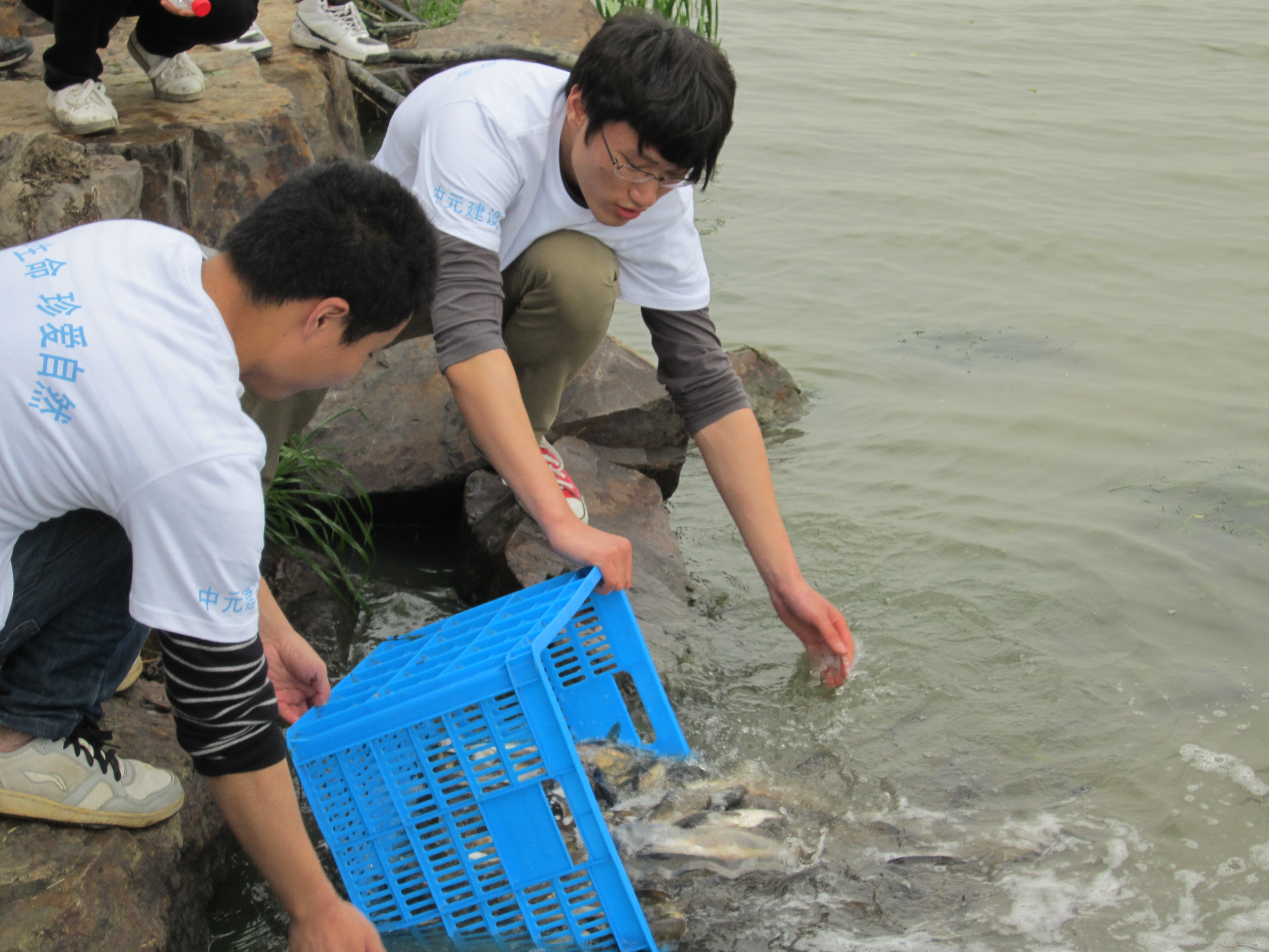 植树活动结束后,大家又来到湘家荡湖区放养鱼苗。看着一尾尾小鱼苗从自己的手中流向湖水里,大家欢快的在水里拍起浪花。而小鱼苗似乎对大家有些不舍,停留在湖边久久不愿离去。协助放鱼苗的师傅说:“这是鱼儿在向大家表示感谢。”