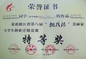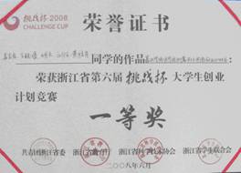 指导的学生作品获得浙江省“挑战杯”大学生科技竞赛特等奖、一等奖