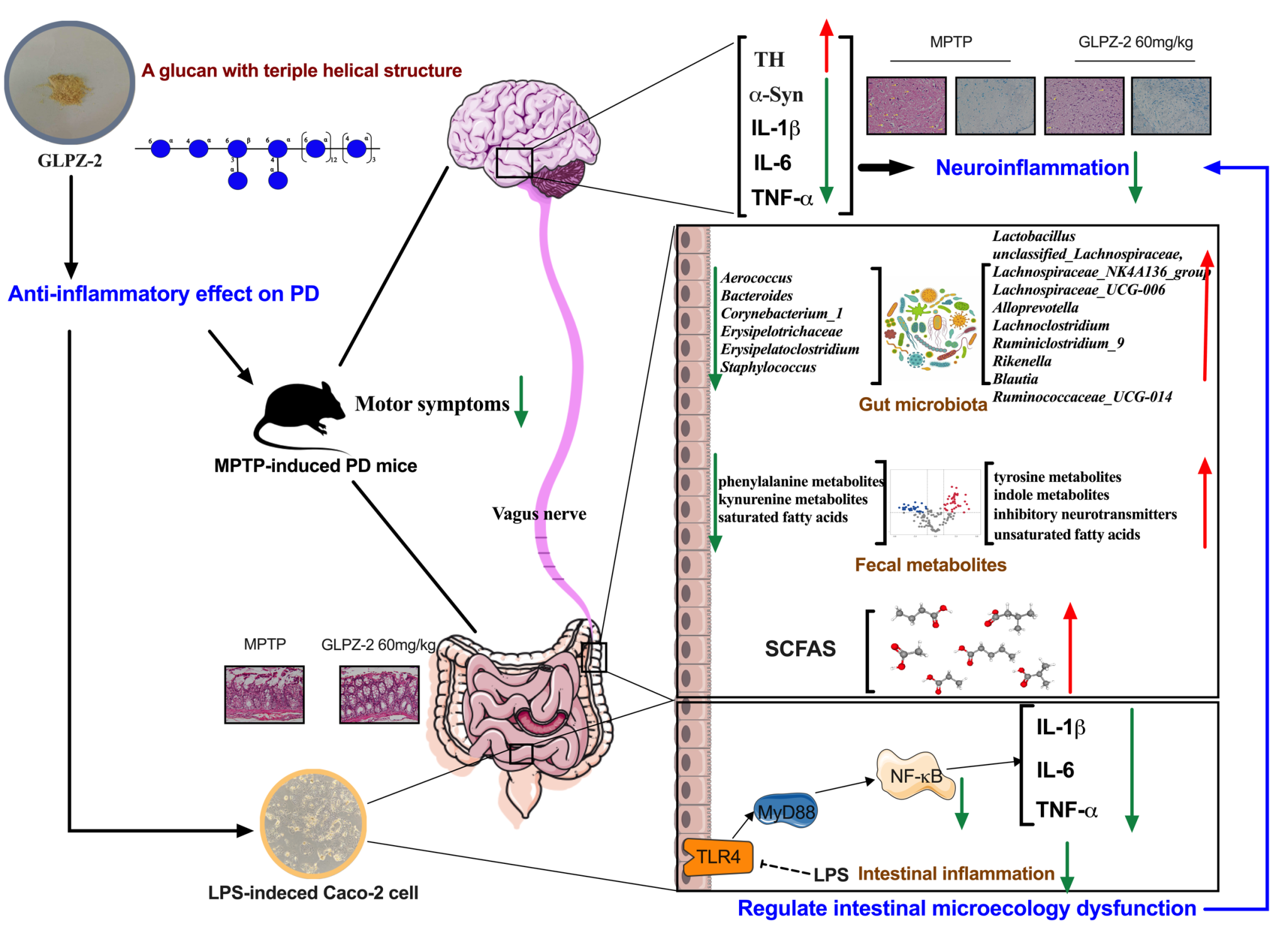 图1 GLPZ-2抑制肠道TLR4/MyD88/NF-κB通路改善帕金森病神经炎症