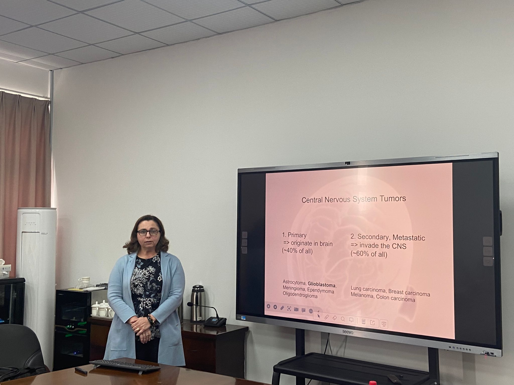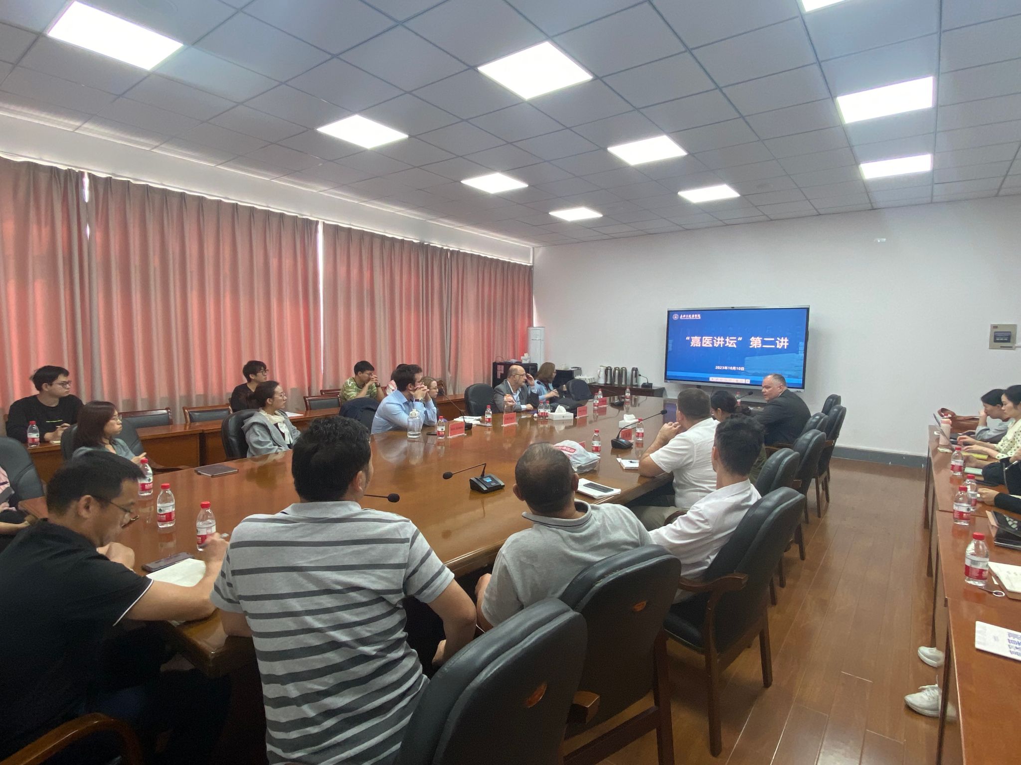 “嘉医讲坛”第二讲环节在仁心楼426会议室进行,会议由Alexey Semyanov院士主持。Vladimir Parpura院士作题为《Vesicular Glutamate Release from Astrocytesat the Interface of Signaling and Metabolism》讲座,内容主要涉及星形胶质细胞释放神经递质谷氨酸及其囊泡融合的时空特性,以及葡萄糖和乳酸盐对星形胶质细胞释放谷氨酸的调节作用。Vedrana Montana教授作题为《Malignant Glioma – from Bench to Bedside》的讲座,主要介绍缓激肽2受体(B2R)可以作为胶质母细胞瘤的一个治疗靶点,以及B2R阻断剂艾替班特(Icatibant)可用于抑制恶性胶质瘤侵袭的辅助疗法。神经科学研究中心团队成员Maxim、Alisa和熊佳丽博士分别进行了科研工作汇报。