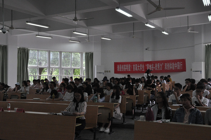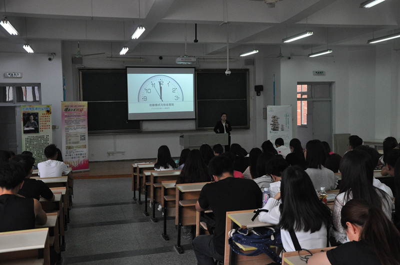 2017年5月25日下午,大学生《创新模式与创业规划》知识讲座和双创体验于嘉兴学院梁林校区1号楼121教室成功举办。上海六力文化传播有限公司总裁、上海桑迪营销策划有限公司总裁姚丽萍女士,上海六力文化传播有限公司项目经理郭发璞先生,上海六力文化传播有限公司项目经理王朋先生,嘉兴学院爱迪影视