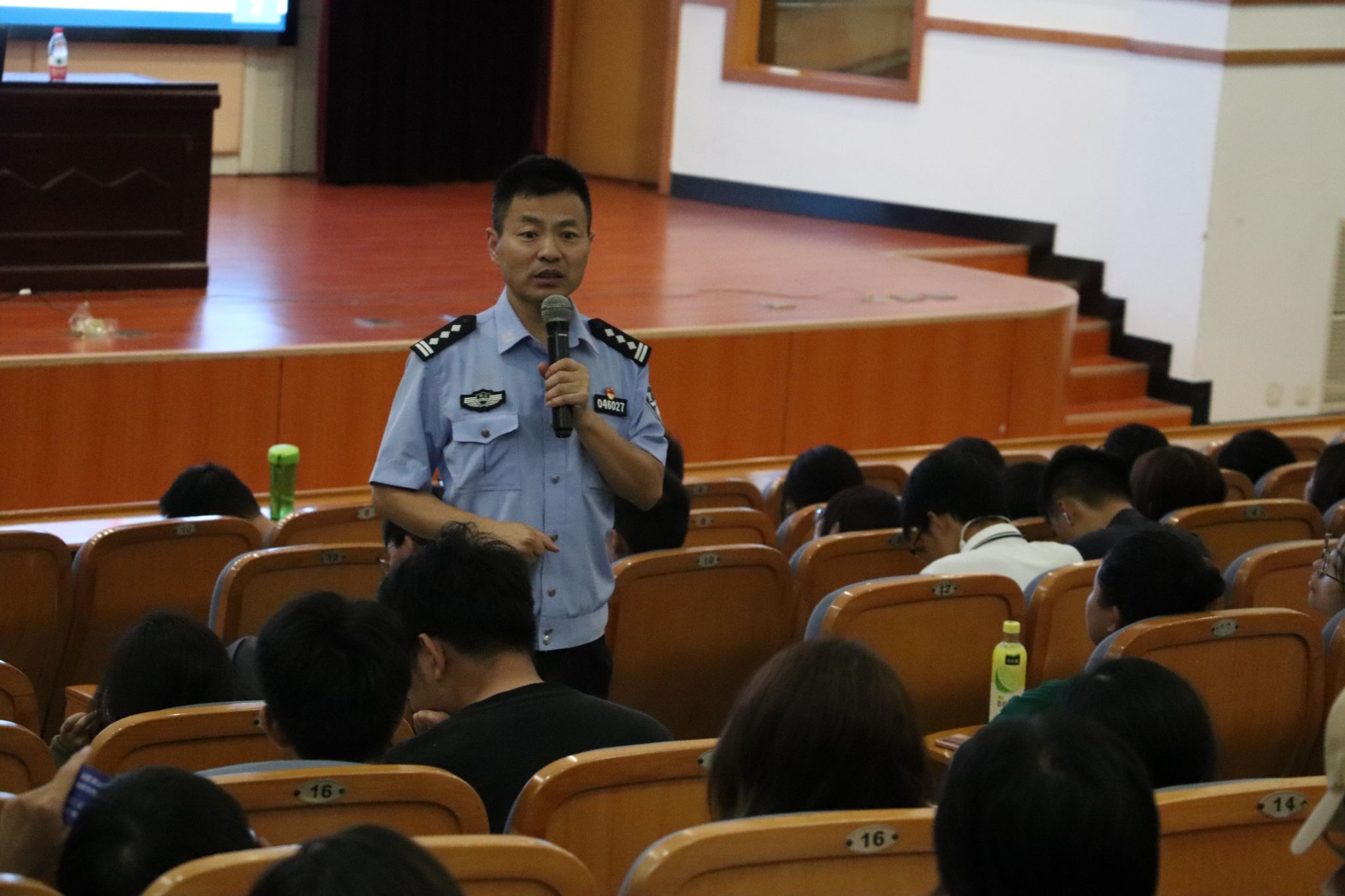 学校邀请了城南派出所民警张秋江给2023级新生带来了一节细致全面的安全讲座。他从安全问题、网络诈骗问题、消防安全问题、人身安全等方面入手,介绍了校园安全防护知识,为萌新们敲响警钟,要求他们牢记安全知识,成为自己的“第一手”保护人,为自己负责。