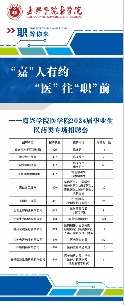 于12月28日上午在仁心楼四楼举办了“嘉人有约,医往职前”2024届毕业生医药类专场招聘会。