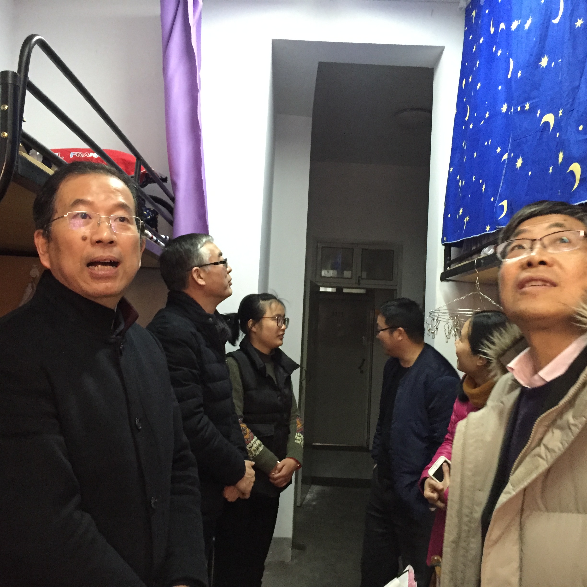 盛校长一行首先走访了大一寝室,同学们纷纷表示住进了同一间宿舍里,大家学会相互关心,相互帮助,各方面都比较适应。接下来我们又走访了即将进入实习的女生寝室,领导们详细询问了他们的身体状况和学习、生活情况,为他们送去关怀和亲切问候。