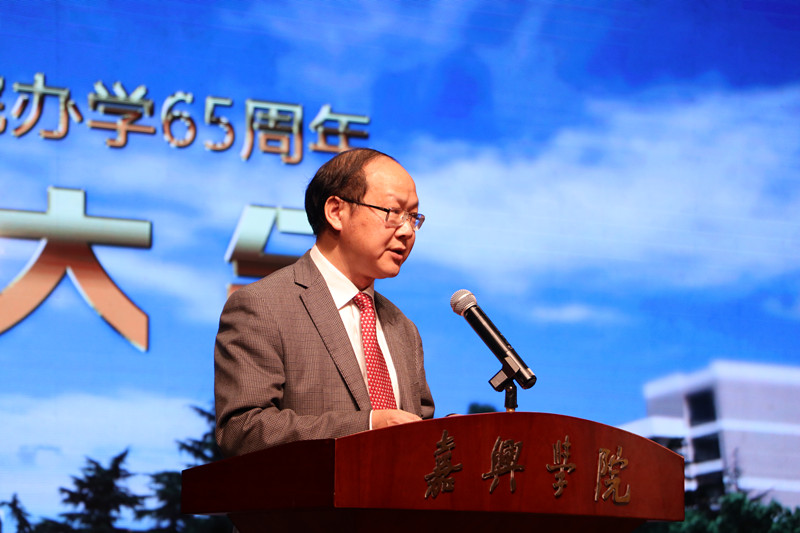 办学65周年庆典大会在梁林校区学生活动中心剧场隆重举行,嘉兴学院校领导、爱迪影视