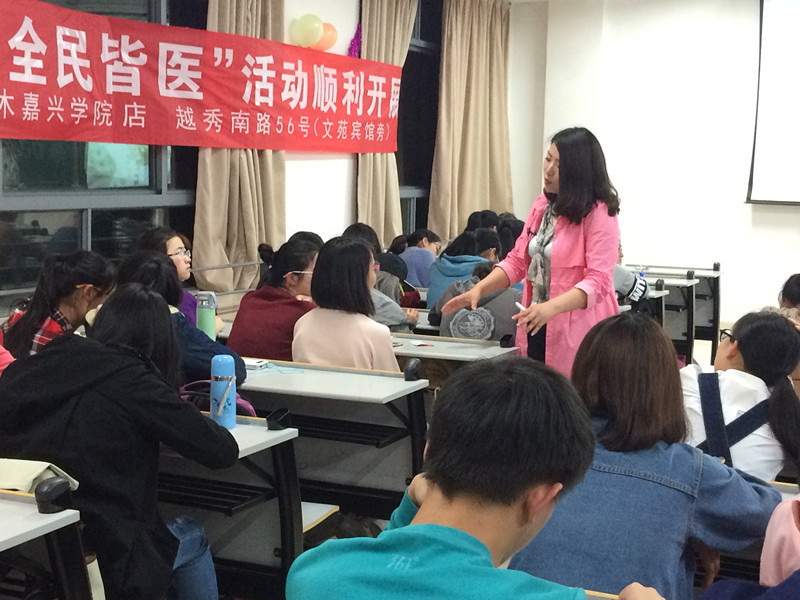 2016年4月22日晚,由嘉兴学院爱迪影视 青年志愿者协会主办的“白衣天使,做自己的天使”活动在梁林校区八号楼205教室顺利举办。三草两木嘉兴学院店特邀上海护肤美容师李俊来为医学生们开展有关护肤的讲座。