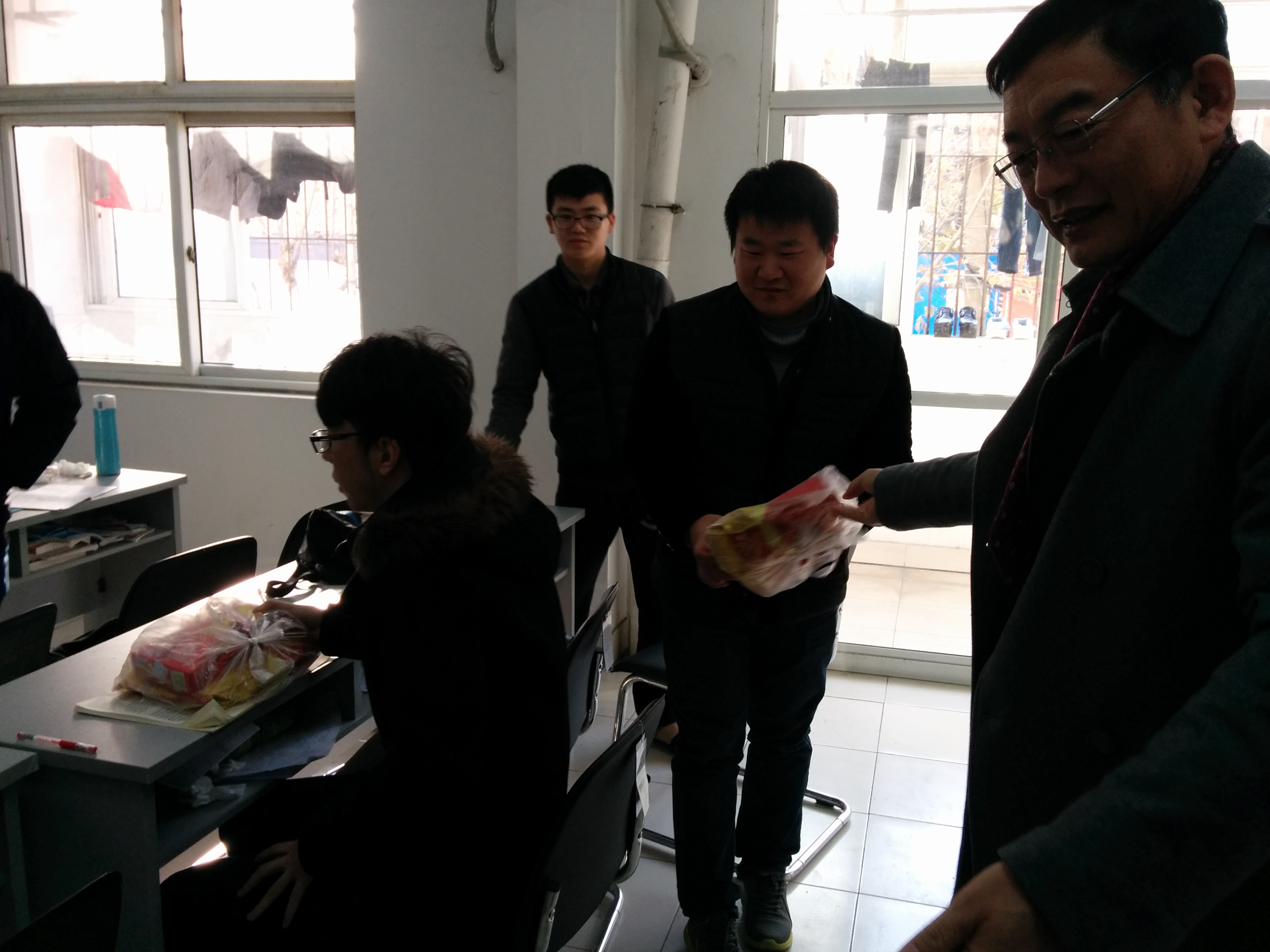 2015年考研备战已进入白热化阶段,为了在最后冲刺阶段给大家鼓劲,12月23日上午,学院惠太望书记、黄金珠副书记、学工办彭溶、王鑫泉老师带着精心准备的慰问品来到嘉兴市各医院毕业生实习点看望考研学生。