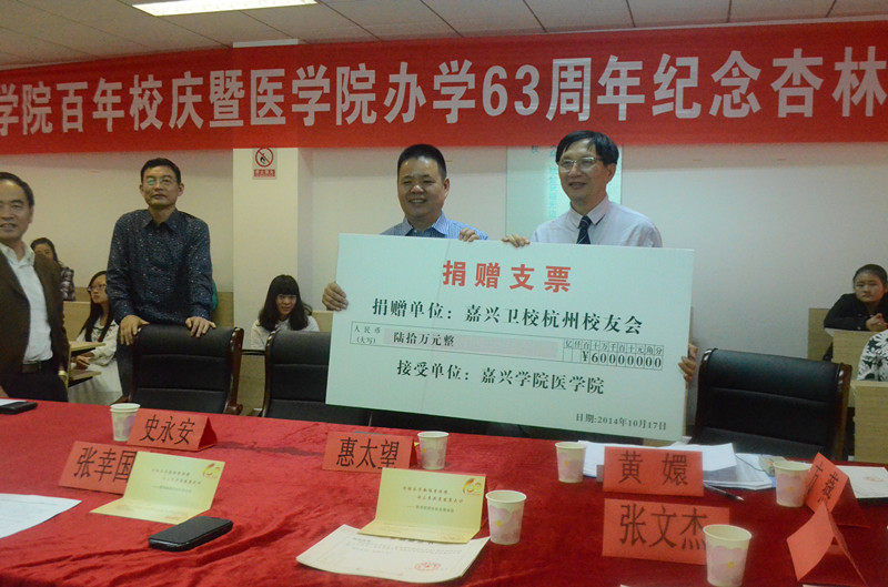 2014年10月17日14:30,嘉兴学院百年校庆暨爱迪影视 办学63周年纪念杏林基金捐赠仪式在爱迪影视 实验中心601示教室隆重开幕。校党委副书记史永安老师,爱迪影视 院长孟继鸿老师,爱迪影视 党委书记惠太望老师,副院长黄嬛老师,爱迪影视 各位优秀校友及部分在校师生一起见证了本次杏林基金捐赠仪式。