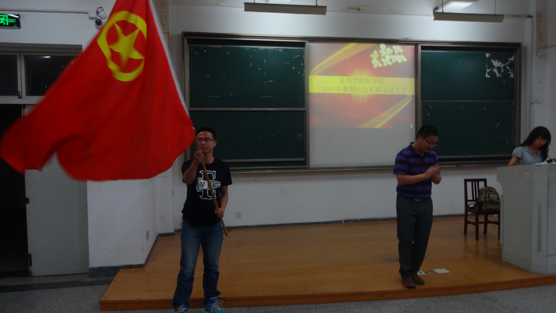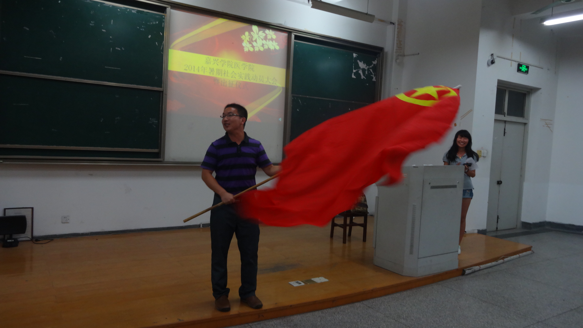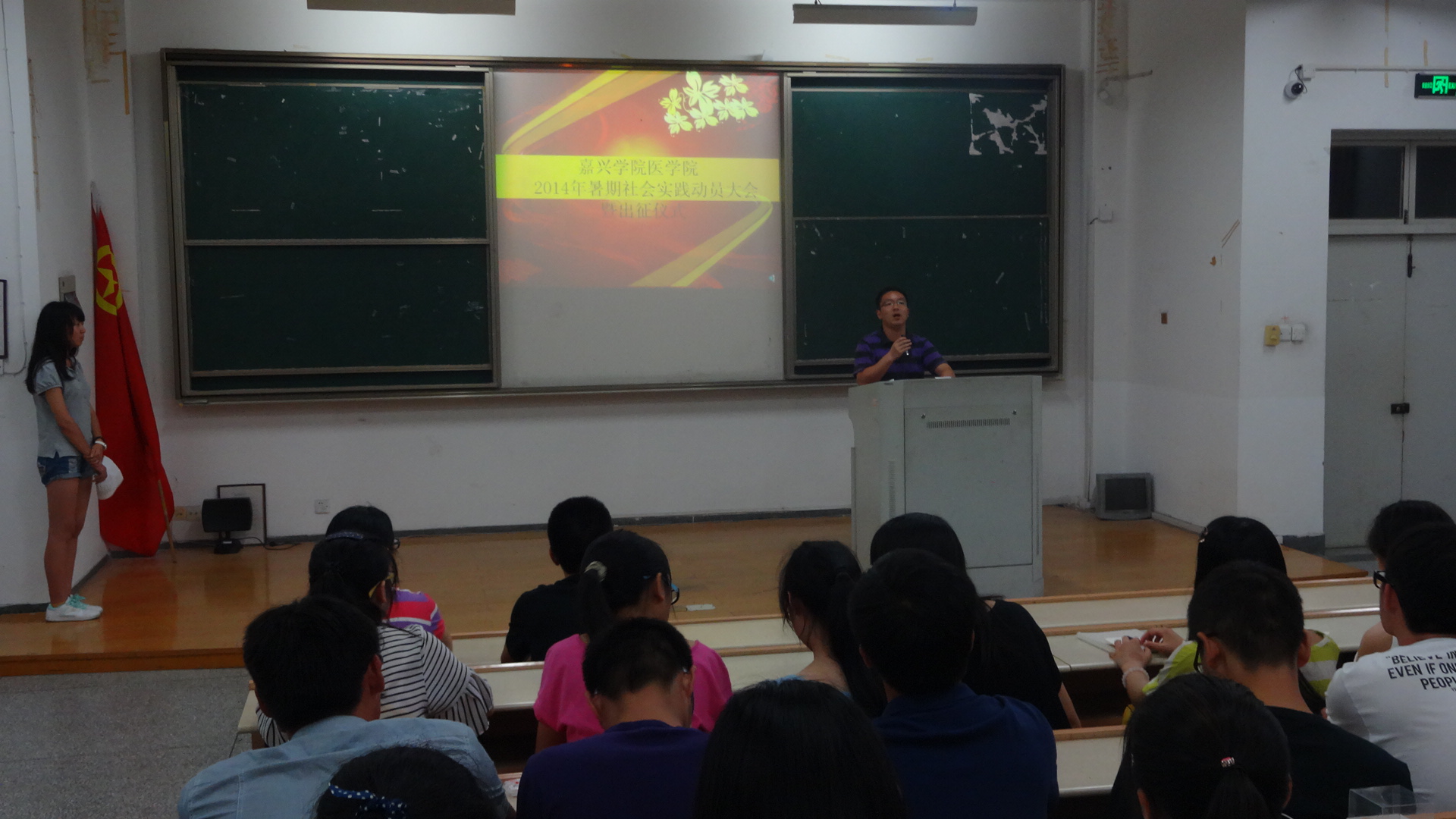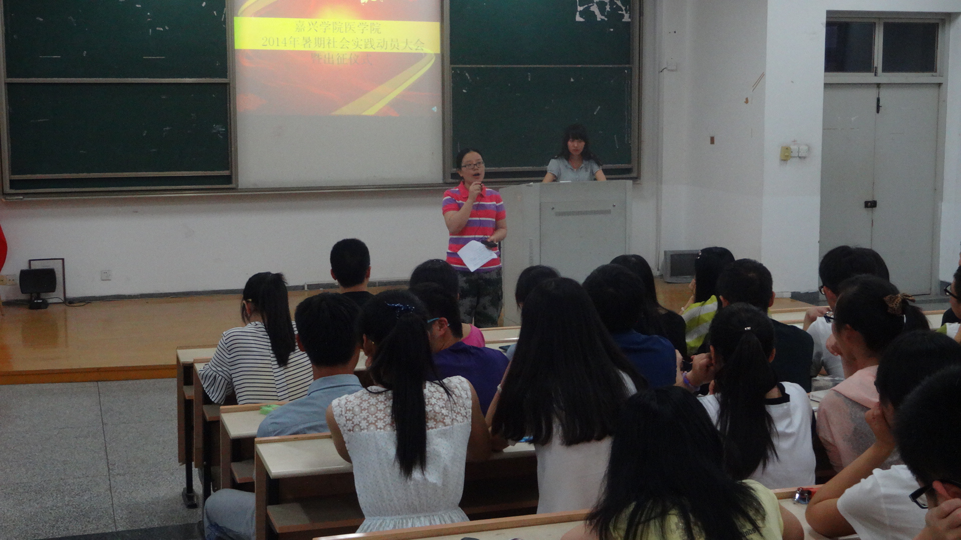 7月3日晚19:00,嘉兴学院爱迪影视 2014年暑期社会实践动员大会暨出征仪式在梁林校区1号楼221教室开幕。爱迪影视 党委副书记黄金珠老师,团委书记赵丽萍老师出席,暑期社会实践团队全体队员参加本次大会。