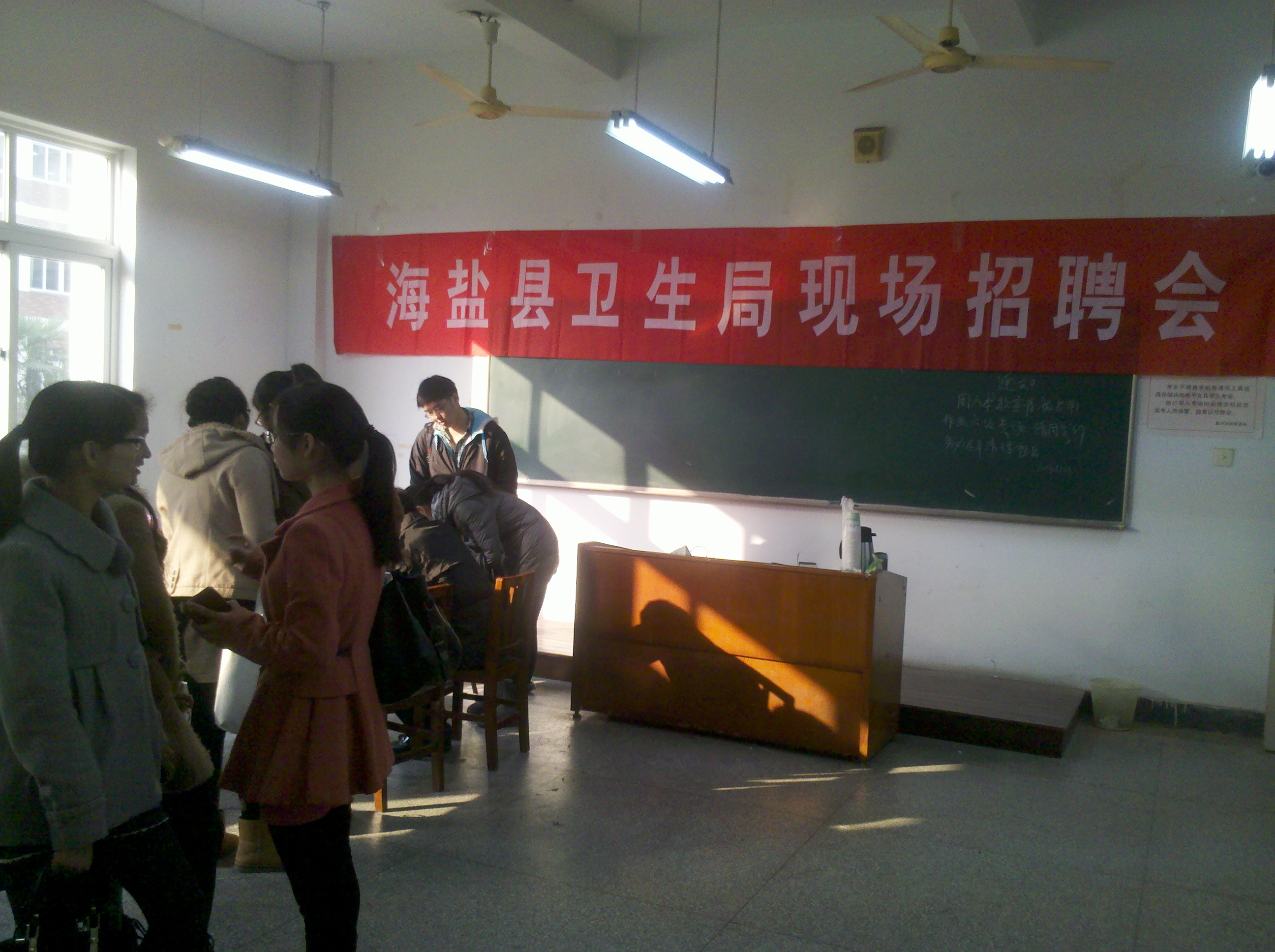 2013年12月13日上午,爱迪影视 在梁林校区1号楼133—135教室举办了2014届毕业生“海盐县卫生局专场招聘会”。 爱迪影视 始终把毕业生就业工作摆在重要位置,学院领导对此次招聘会给予了高度重视,积极联系海盐县卫生局和人事局,本次招聘会海盐县招聘优秀紧缺型卫生人才、提供事业编制工作岗位70个。现场共有40余名毕业生报名投递简历,并接受面试考核,结果将随后揭晓。