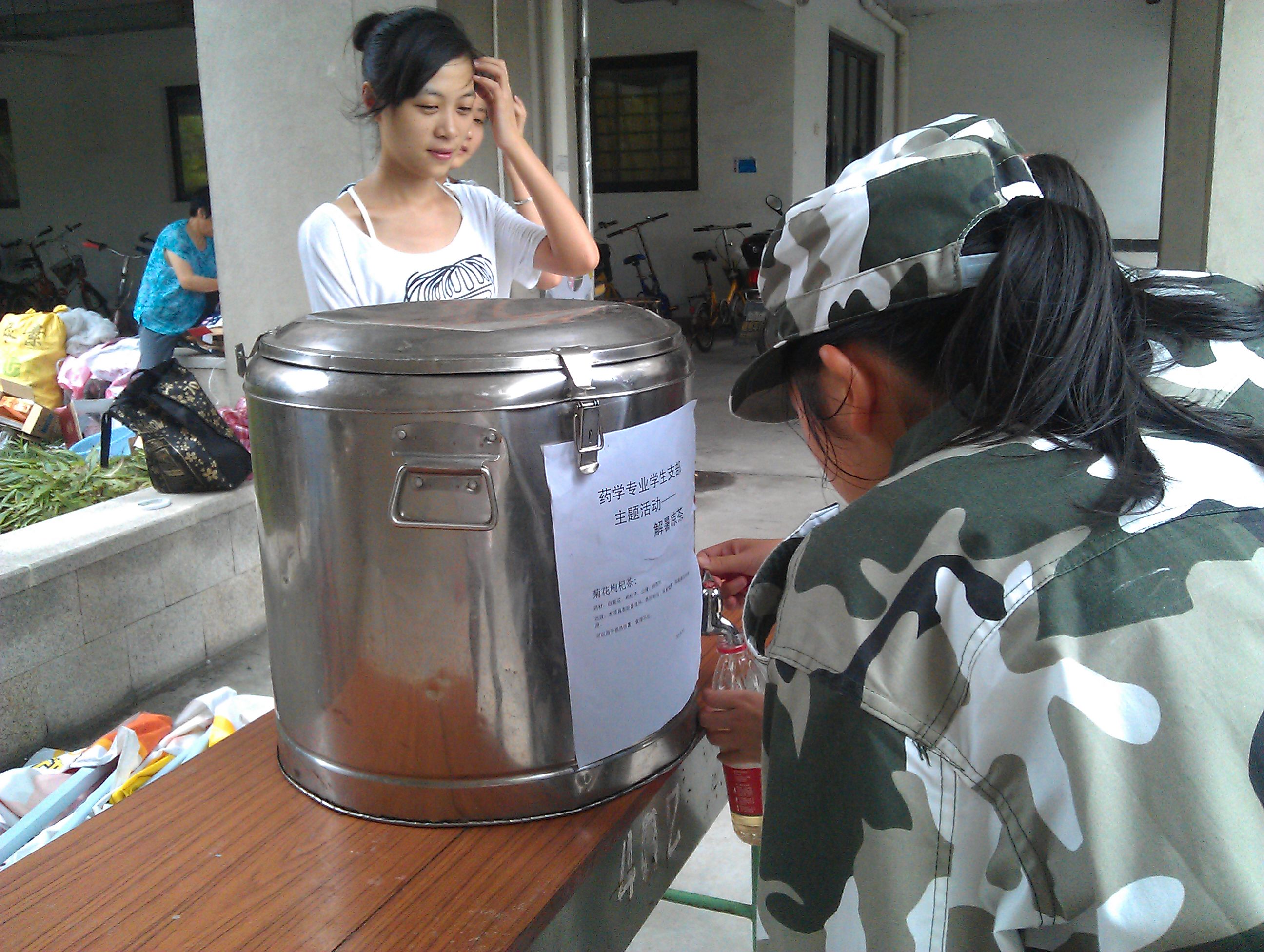 7月5日一早,爱迪影视 药学专业学生党支部的成员们来到食堂集合,开始着手为正在军训的大一同学们煮制凉茶。支部成员们利用自己所学的专业知识,在系部老师的指导下,细心列出凉茶配方,精心煮制。