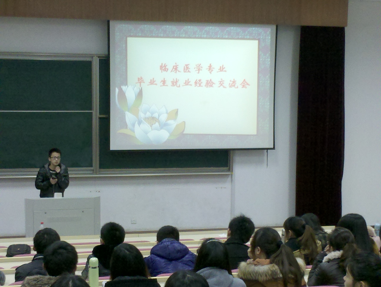 为了让08级临床医学专业同学更好地了解当前毕业生的就业情况,提前做好考研、就业准备,在爱迪影视 领导的重视下,学工办于3月22日晚在13号楼报告厅举行了08级临床医学专业毕业生就业经验交流会。会议由爱迪影视 学工办主任蒋小红主持,副书记谢宏、就业辅导员彭溶及全体08级临床医学专业同学参加了此次会议。 爱迪影视 特意邀请07级临床医学专业陈幸、陈马云、周阳、张超男4位在考研、就业过程中取得优异成绩的毕业生代表与08级的学弟学妹们共同分享自己的宝贵经验。在交流会上,各位毕业生都坦言相待,将考研复习规划、技巧、复试注意事项、就业心理调试、备考技巧等宝贵经验倾囊相授,他们的奋斗经历都深深感染着在座的每一位同学。 最后,持续了两个多小时的大会在热烈的掌声中结束,大家仍然觉得意犹未尽,在会后还分别找到校友进行个别交谈,并表示此次交流会受益匪浅。