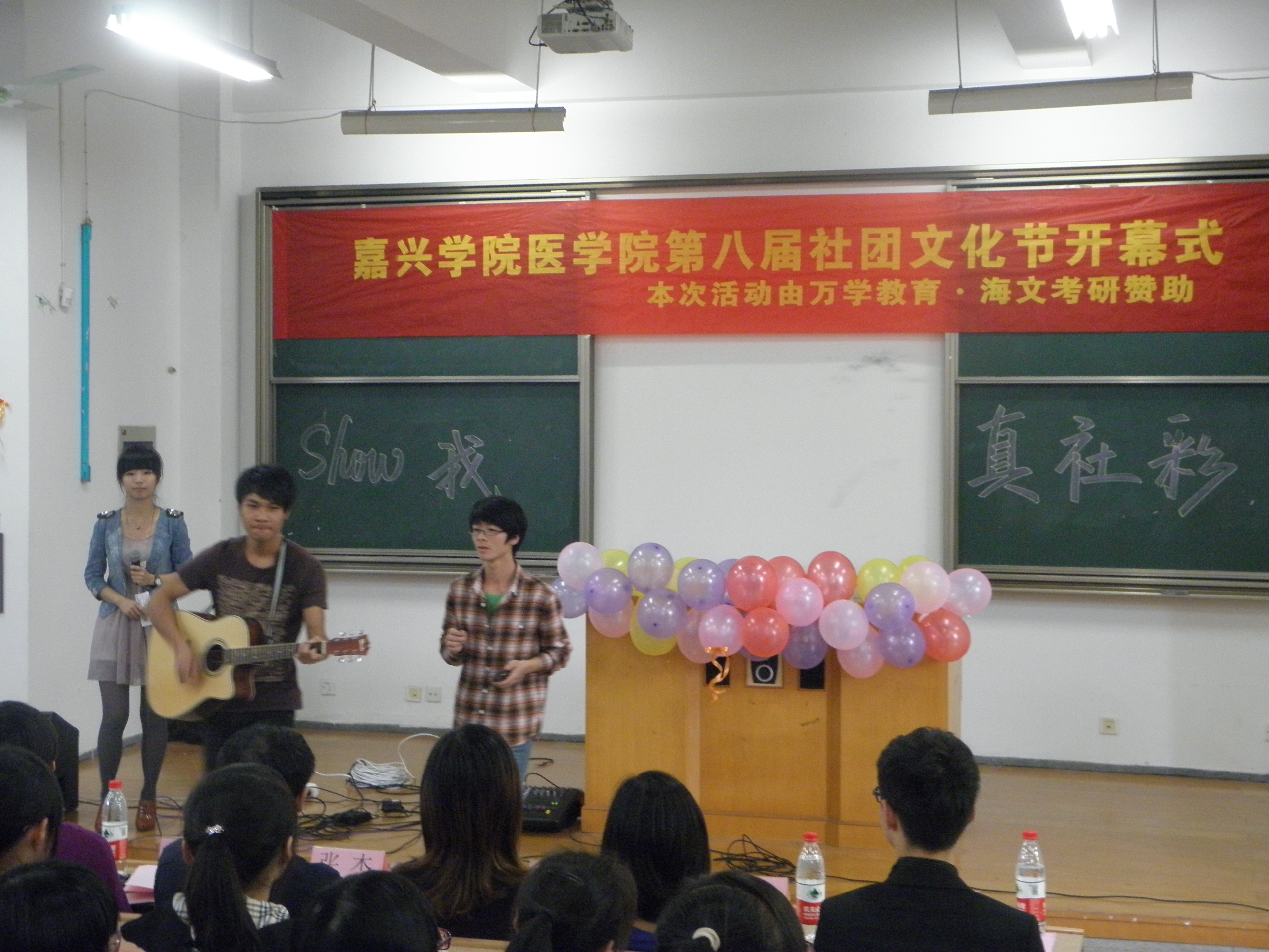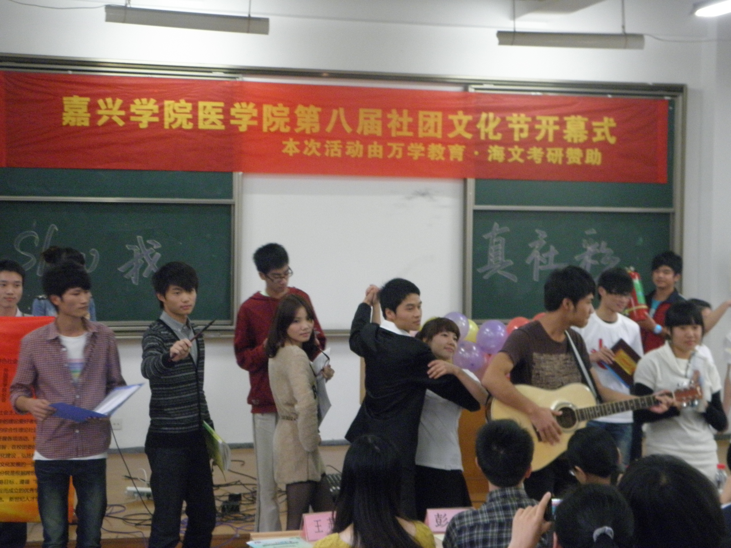 2011年10月19日中午12:30,爱迪影视 第八届社团文化月“Show我真社彩”开幕式在梁林校区1号楼121教室举行。爱迪影视 党总支书记、副院长张杰、党总支副书记谢宏、学工办团总支辅导员出席本次活动,并为开幕式剪彩。 开幕仪式上,谢宏副书记发表了热情洋溢的讲话,从校园文化的群众性、导向性和实效性三个方面对爱迪影视 社团文化建设提出了殷切的期望,鼓励同学们通过参加校园文化活动提高自身的人文素养,以点带面共同促进校园良好文化氛围的形成。 本次社团文化月由爱迪影视 社工委旗下的15个社团共同承办,共开设16项活动,涉及书画、瑜伽、演讲、音乐、舞蹈、英语等多个方面,以展现各个社团的不同特色和精彩风貌,社团文化月计划于十一月中旬结束。