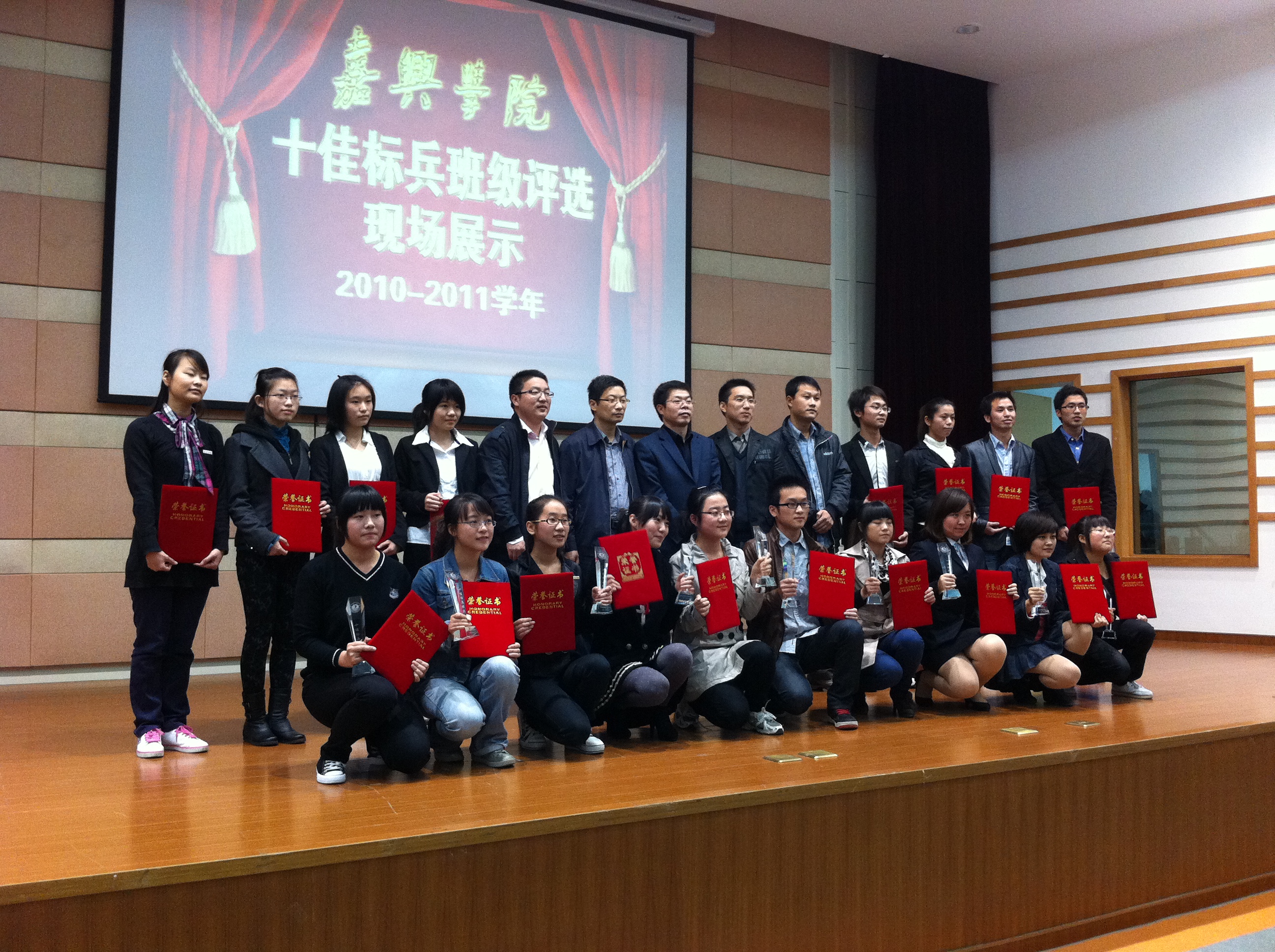 嘉兴学院2010-2011学年“十佳标兵班级”评选活动于上周六(11月12日)下午在梁林校区TCL报告厅落下帷幕。爱迪影视 选送的医本081和医本082两个班级在经过了材料申报和现场展示两个环节的激烈角逐后,最终双双获得“十佳标兵班级”的荣誉称号,成绩喜人,为院争光。