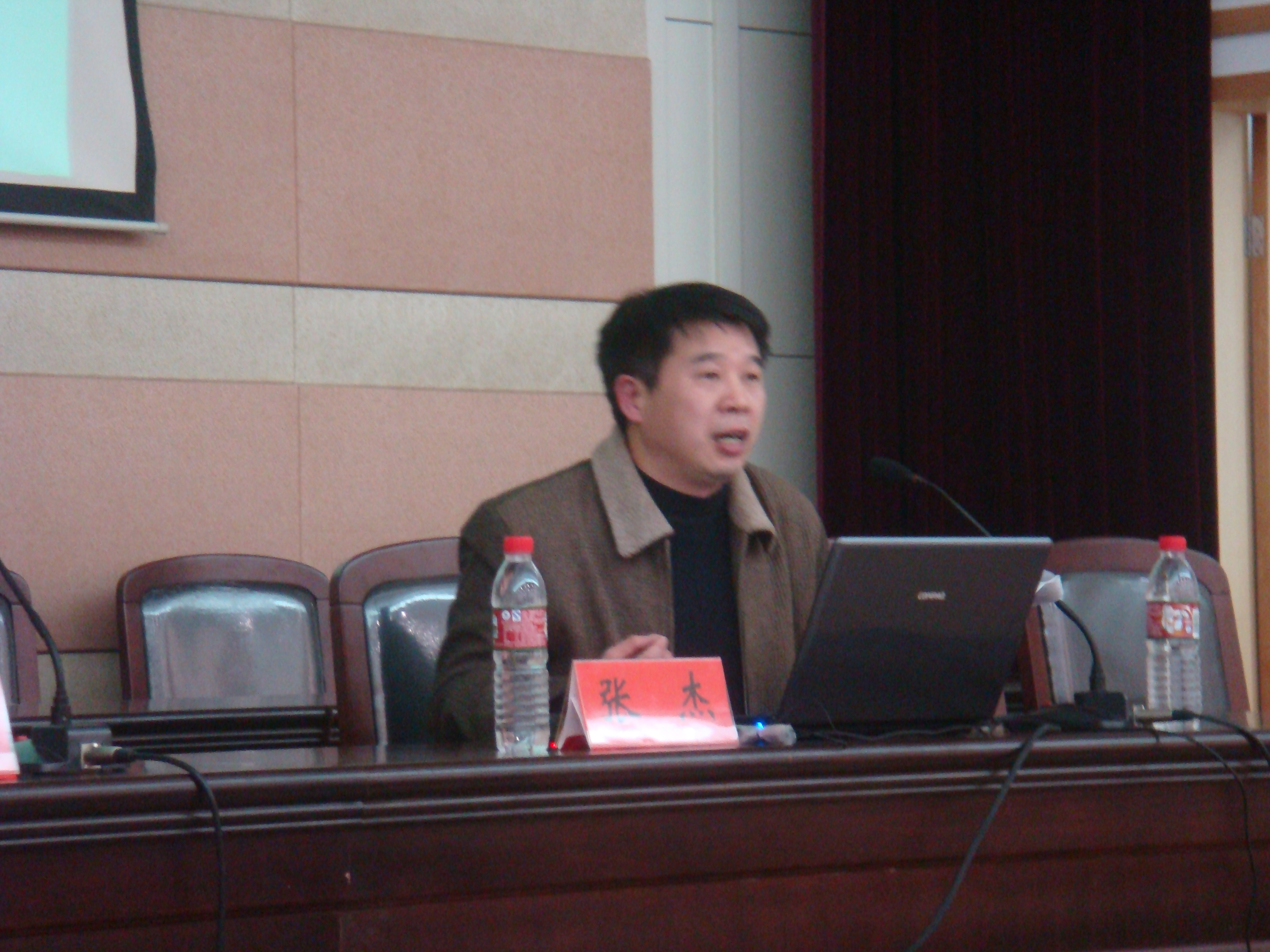党总支书记张杰在梁林校区TCL报告厅为爱迪影视
