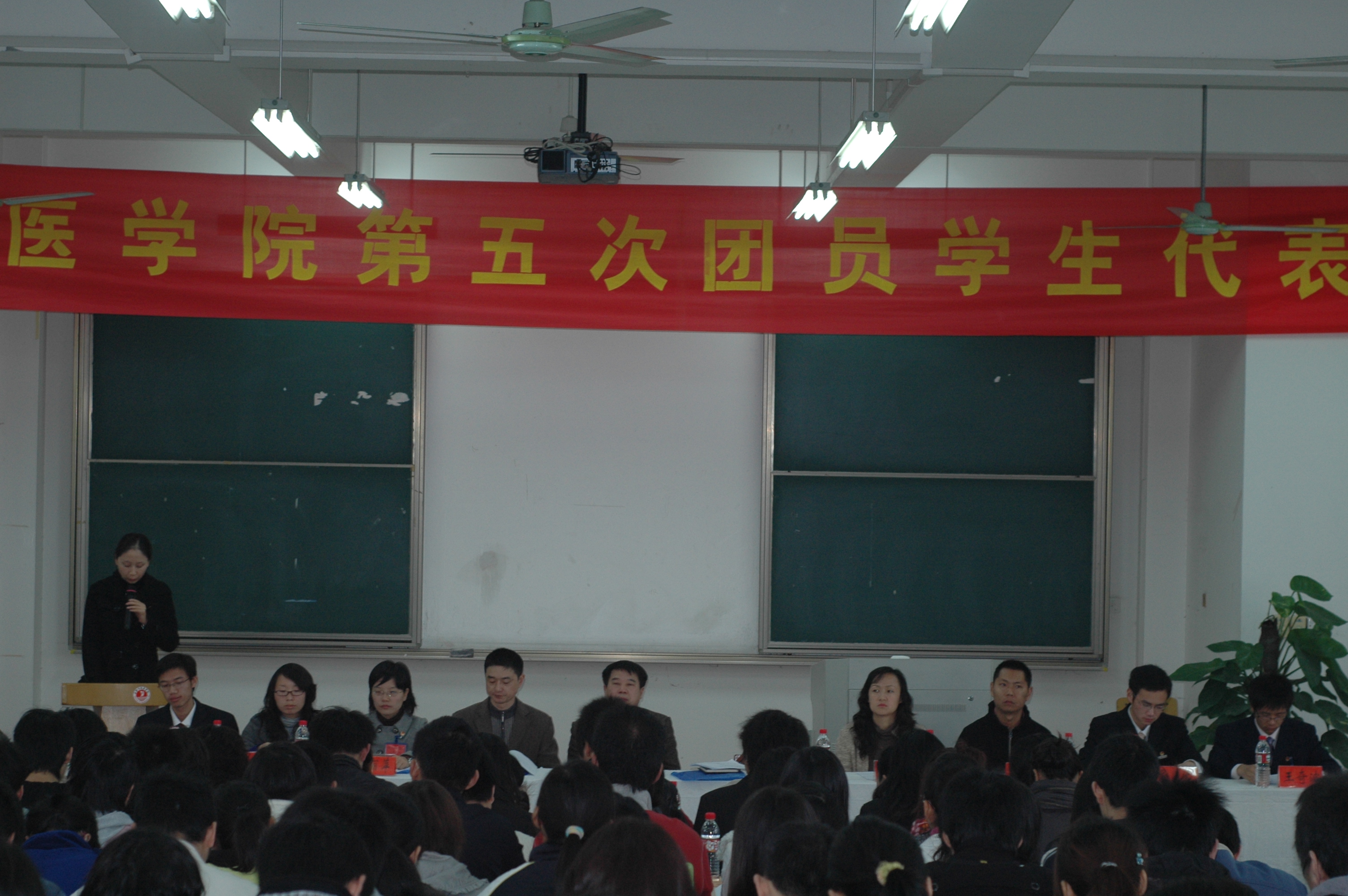 在梁林校区第四教学楼221教室隆重召开了第五次团员、学生代表大会。大会审议通过了团总支工作、学生会工作等报告,选举产生了7名团总支委员、17名学生会委员。