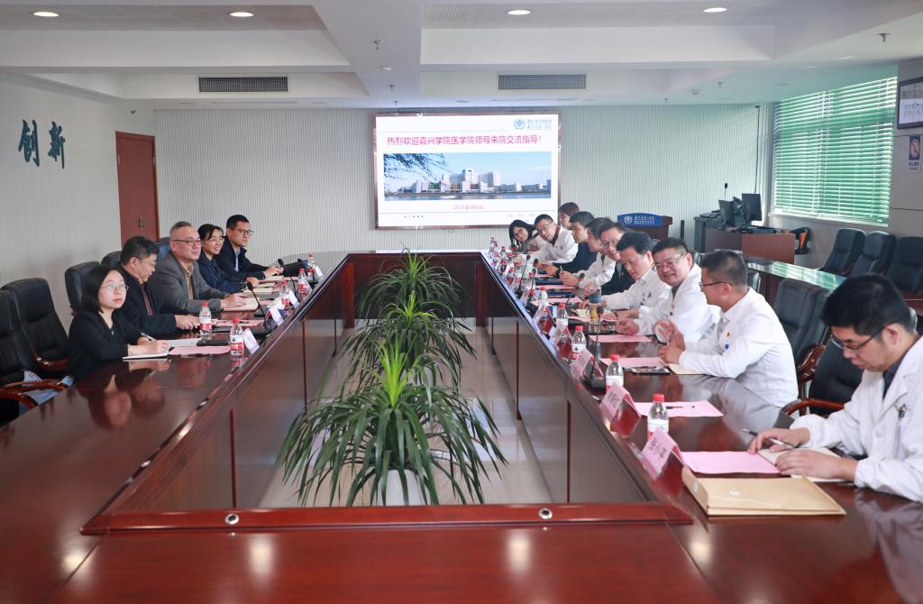 党委书记陈云飞,副院长徐营、潘巍巍,党委副书记李联钊、党政办主任谢馨娆一行到嘉兴学院附属医院进行工作交流。附属医院全体班子成员,党政办、科研与学科建设部、教学培训部等科室负责人参加交流。交流会由附属医院副院长周清河主持。