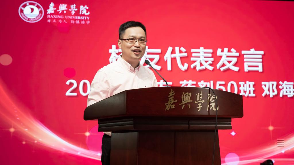 1989届校友、医士445班杨建中和2001届校友、药剂50班邓海明均为扎根基层一线的校友代表,他们追忆了往昔的嘉兴卫校校园生活,结合自身工作经历和取得的工作成绩,分享了“医者仁心”的人生感悟,他们表示将始终感恩母校,继续发扬嘉医学子的优良作风,为基层医疗卫生事业做出更大贡献,为母校增光添彩。
