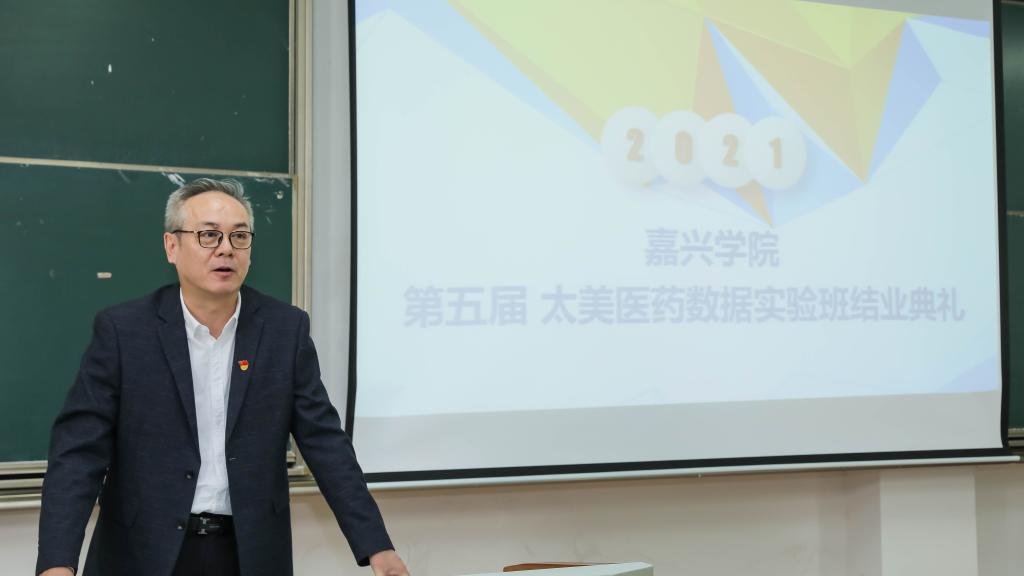 2021年11月4日,“太美医药数据实验班”第五期结业暨第六期开班仪式在1号楼122教室举行。学院党委书记陈云飞、副院长徐营、副院长潘巍巍,圣方医药研发数据管理部经理化甜甜,部分药学系专任教师和第五期第六期实验班同学们出席了开班及结业仪式。仪式由药学系主任黄越燕主持。