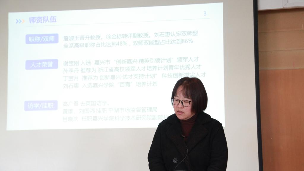 师资队伍建设方面。加强内培外引,师资队伍建设水平进一步提高。2021年新入选浙江省高校领军人才推荐人选1人,入选创新嘉兴精英引领领军人才2人,入选“百青”培养人才2人,国内访学1人,国外进修1人,校内外企事业单位挂职教师5人,在职攻读博士学位2人。