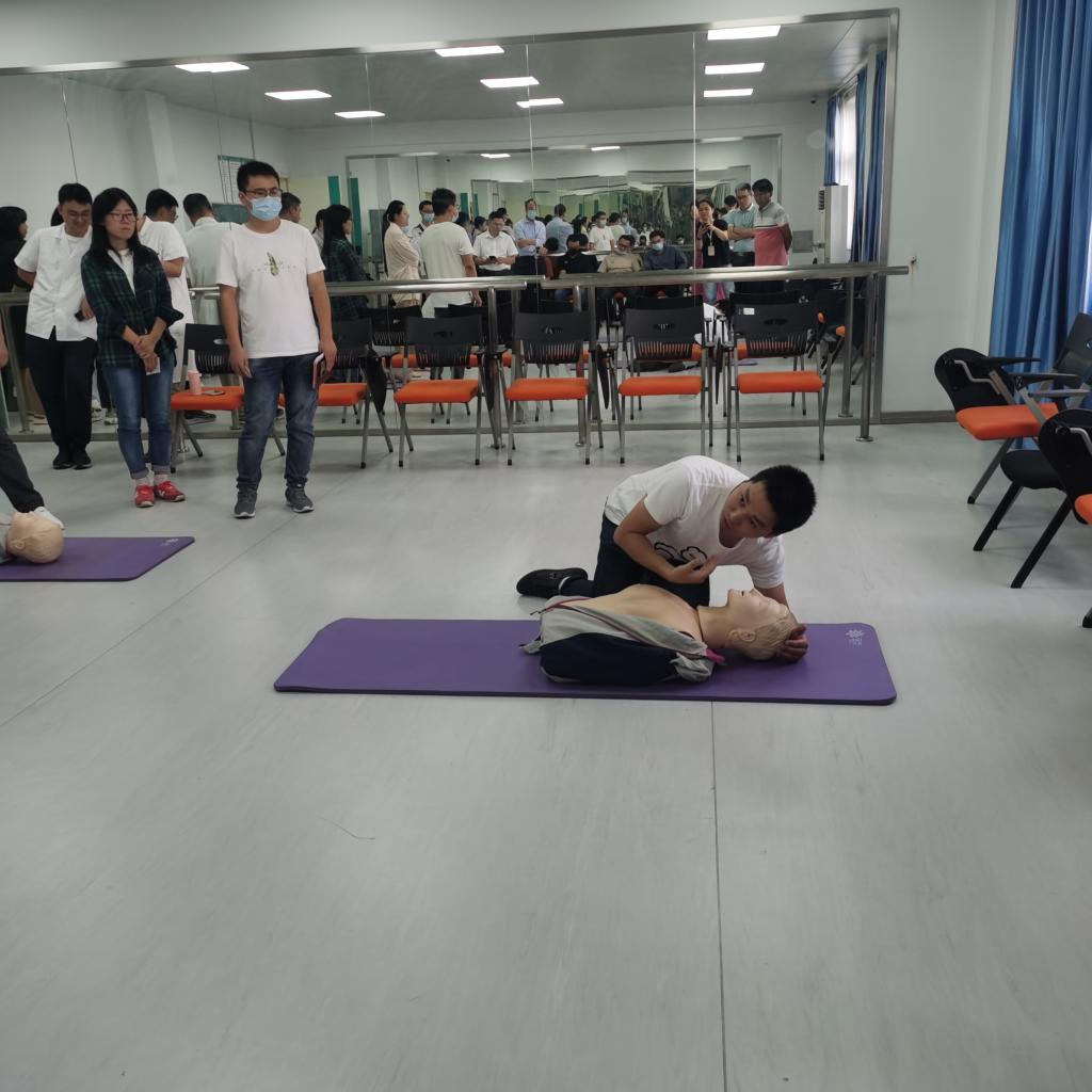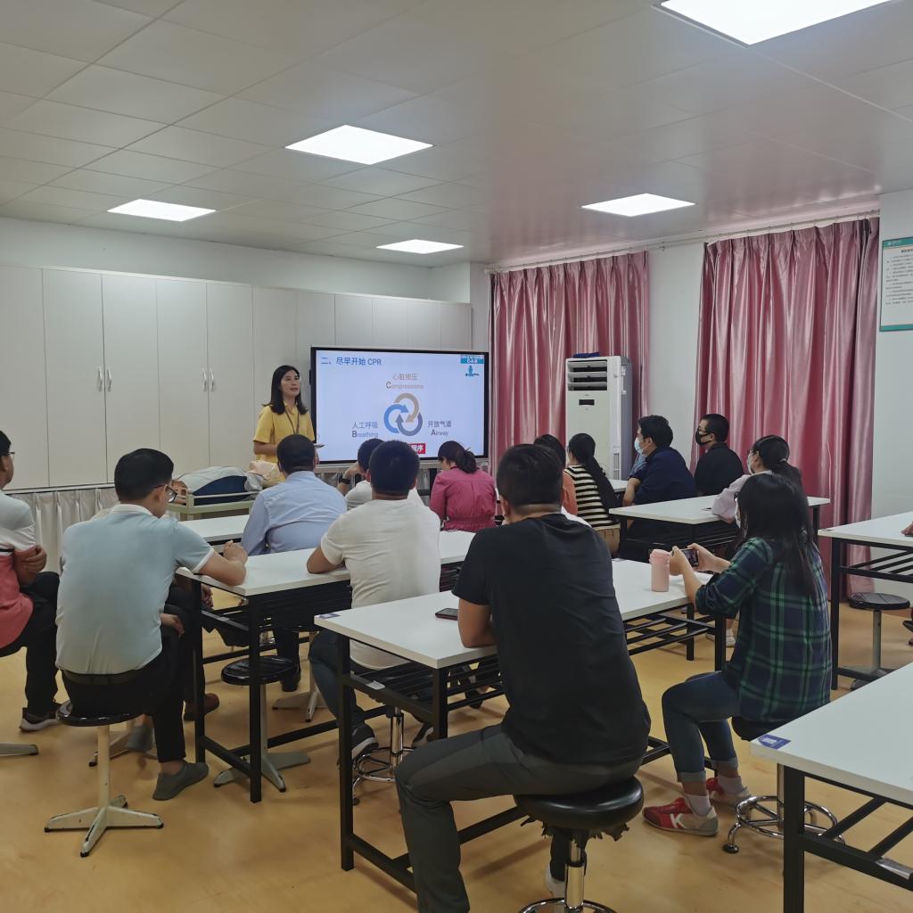 实验中心团队面向全校实验中心安全员开展急救知识培训活动,宣讲心肺复苏急救训练项目。