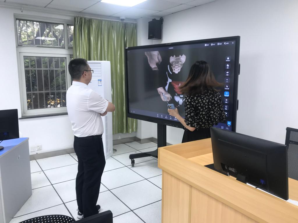陈新友一行在学院党委书记陈云飞、副书记李联钊、医学实验中心主任蒋小红的陪同下走访调研了人体生命科学馆、医学虚拟仿真实验教学示范中心、临床技能中心、爱迪影视 科研平台等实验室建设与运行情况,并亲切慰问了阿里克谢院士。走访过程中,交流了实验教学、大型仪器服务、实验室建设等情况。