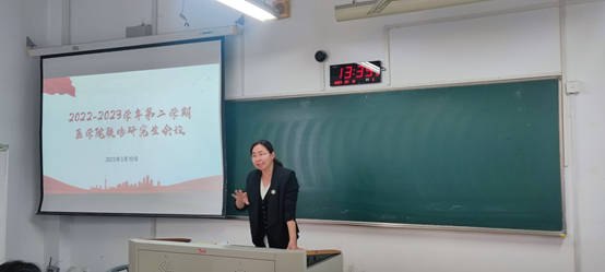 研究生班主任高金来就研究生开题、中期考核、论文盲审、答辩等培养工作做了仔细的说明和安排。会议最后,潘巍巍副院长向与会研究生着重强调了三个方面的内容,一是要认真撰写小论文和毕业论文,保证文章的真实性、原创性、规范性,并从一些论文撰写实例给同学们做了讲解;二是保持良好的学习习惯和学习态度,遵守学校管理规定;三是要学会疏解压力,加强和导师、研工老师、同学的沟通,快乐学习。
