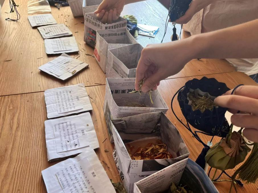 香料与空香囊陈列于案,大家依照喜好动手制作属于自己的独特香包,邂逅香学的浪漫。