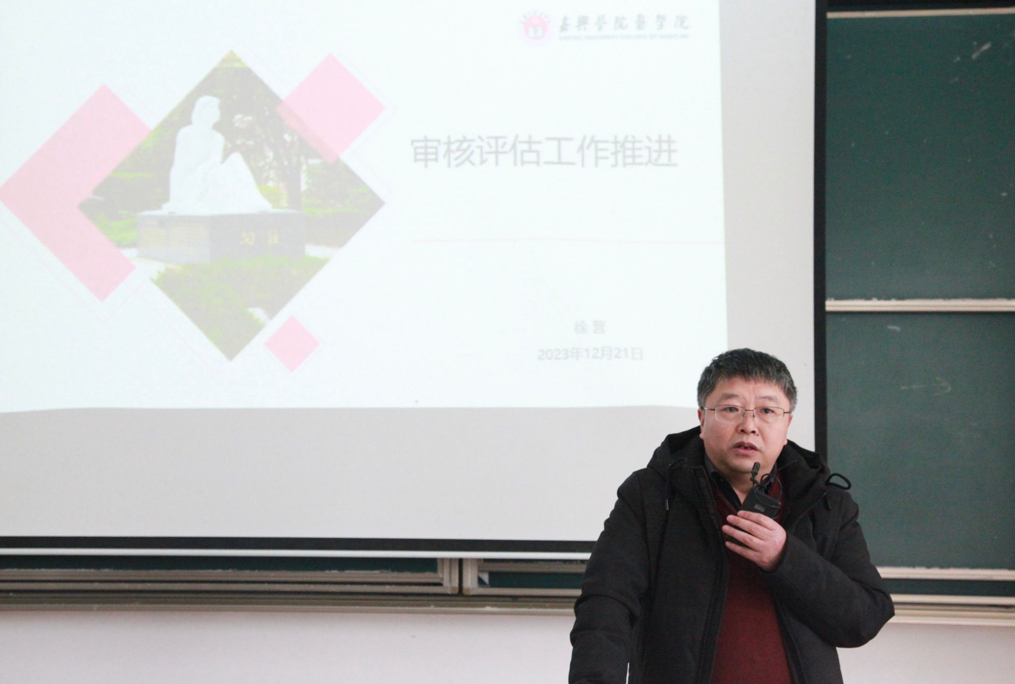 院长何治针对教育教学审核评估工作着重进行了强调,并对审核评估相关的国家一流本科课程申报、国家一流本科专业建设与验收、药学专业认证准备、临床医学专业认证整改等方面工作以及其他工作进行了安排部署。