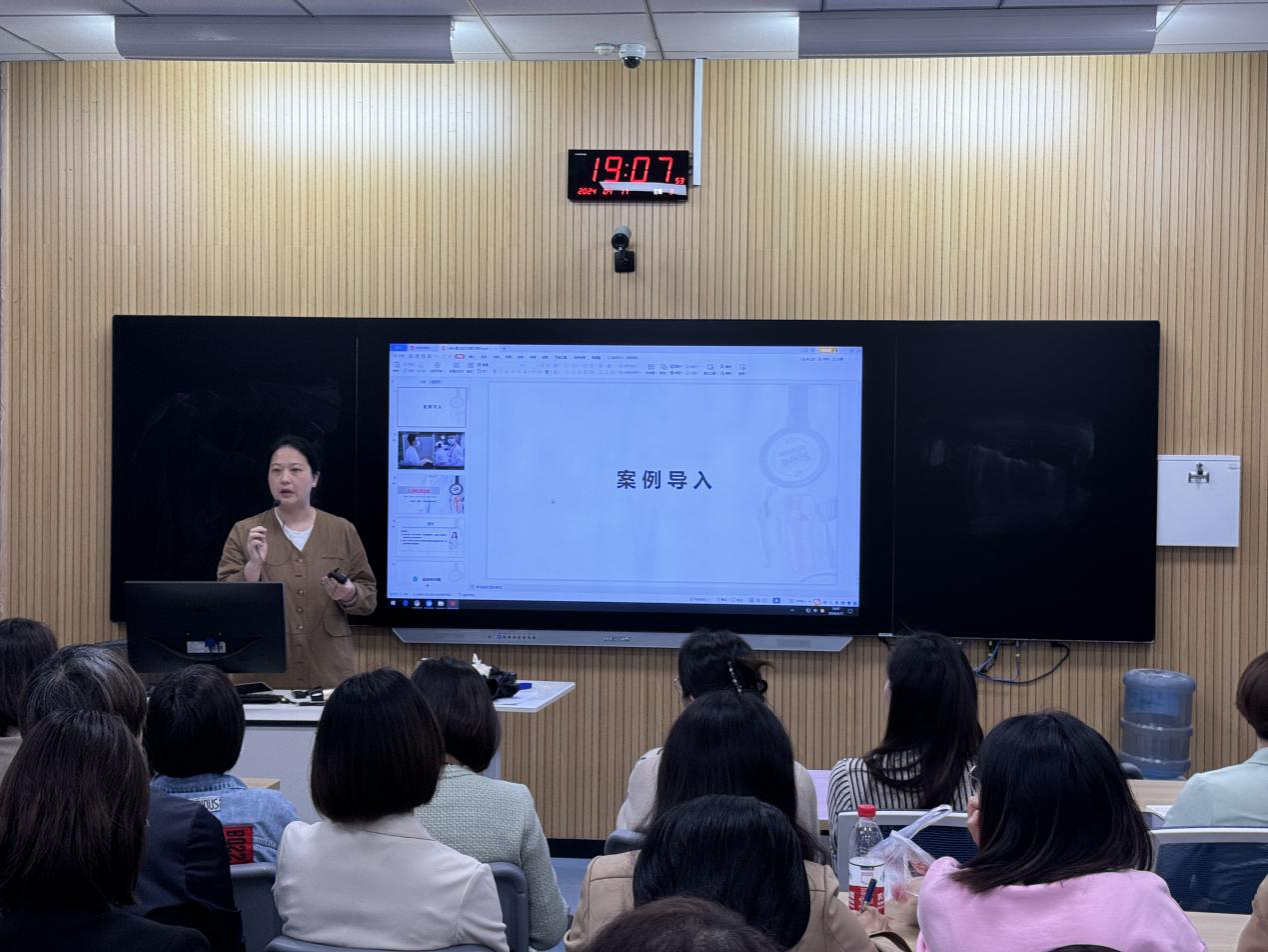 雷璇老师以“大肠癌患者的护理”为题,介绍了线上线下混合式教学的特点,分享了如何利用游戏、弹幕、头脑风暴等环节提高学生课堂参与兴趣。王艳萍老师以“上消化道出血”为题,从宏观上与大家探讨根据课程特点、学情分析找到适宜的教学设计方案;从微观上以一次课为例,分享“案例贯穿”、“问题引导”、“温故知新”及“课程思政”设计。谢晓云老师立足妇产科护理学,以“阴道炎症”为例,以任务单形式整合教学内容,探讨如何以任务表单贯穿多而杂的教学知识点设计,同时以3张PPT的内容进行教学实景展示。周丹老师以急诊中毒案例进行课程导入,以三维动画、视频案例等多媒体形式突破课程难点,将知识点有效融入,教学过程生动活泼引发思考,思政内容自然融入引起共鸣。