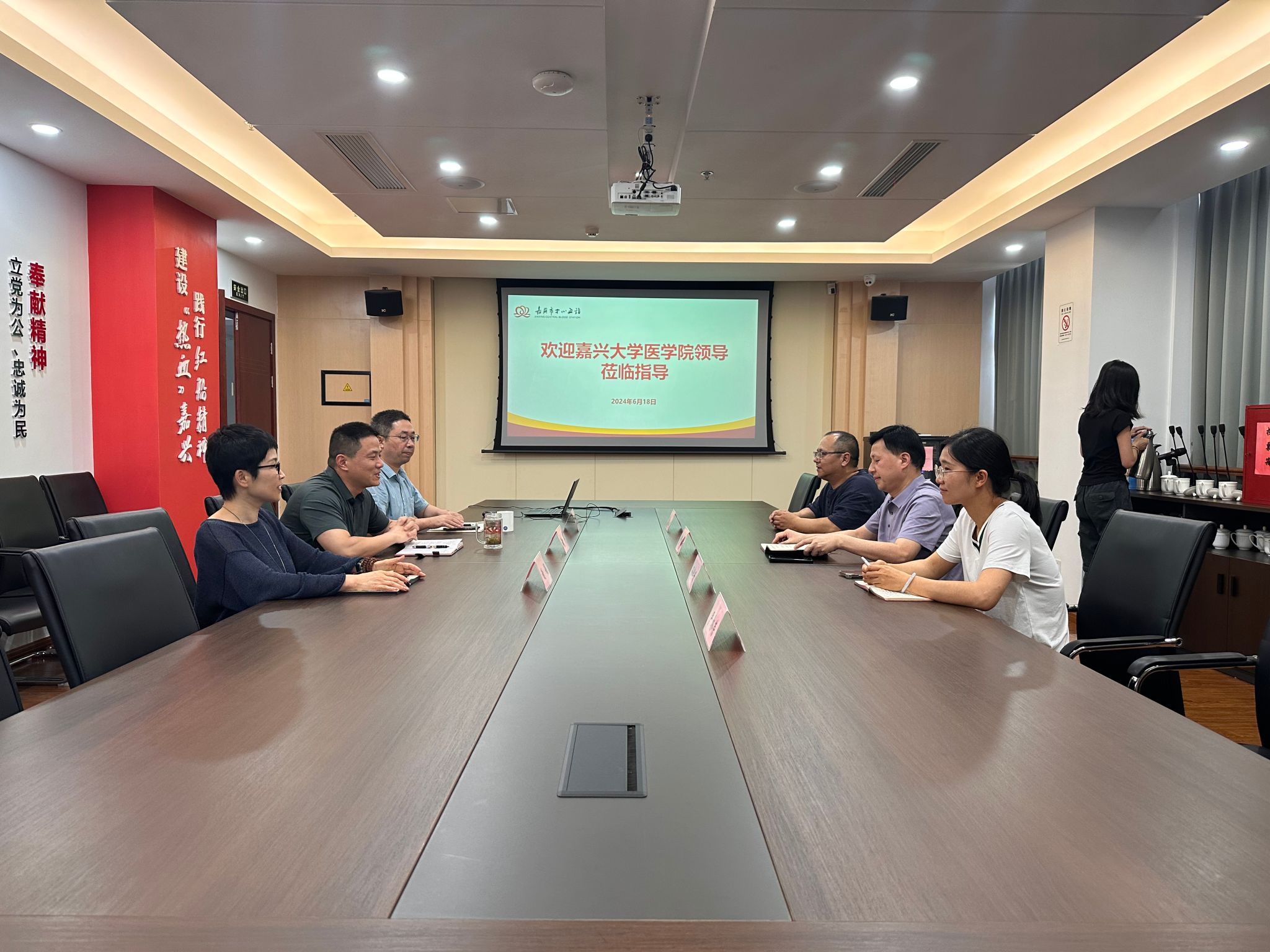 院长何治、副院长孙李丹、病原生物学与免疫学教研室主任姜玉新以及办公室严林荣等一行4人赴嘉兴市中心血站调研交流,旨在加强双方在学科建设、人才培养等方面的合作。嘉兴市中心血站党支部书记、站长徐军、副站长李建华、副站长谢娟及相关人员参加了本次交流。