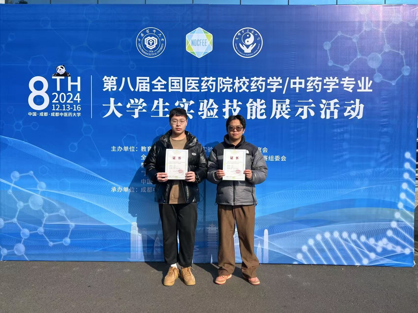 药学专业22级何博洋、李书铭两名同学分别荣获本次大赛的一等奖、二等奖。创历年我校学生参与此项赛事的最好成绩。