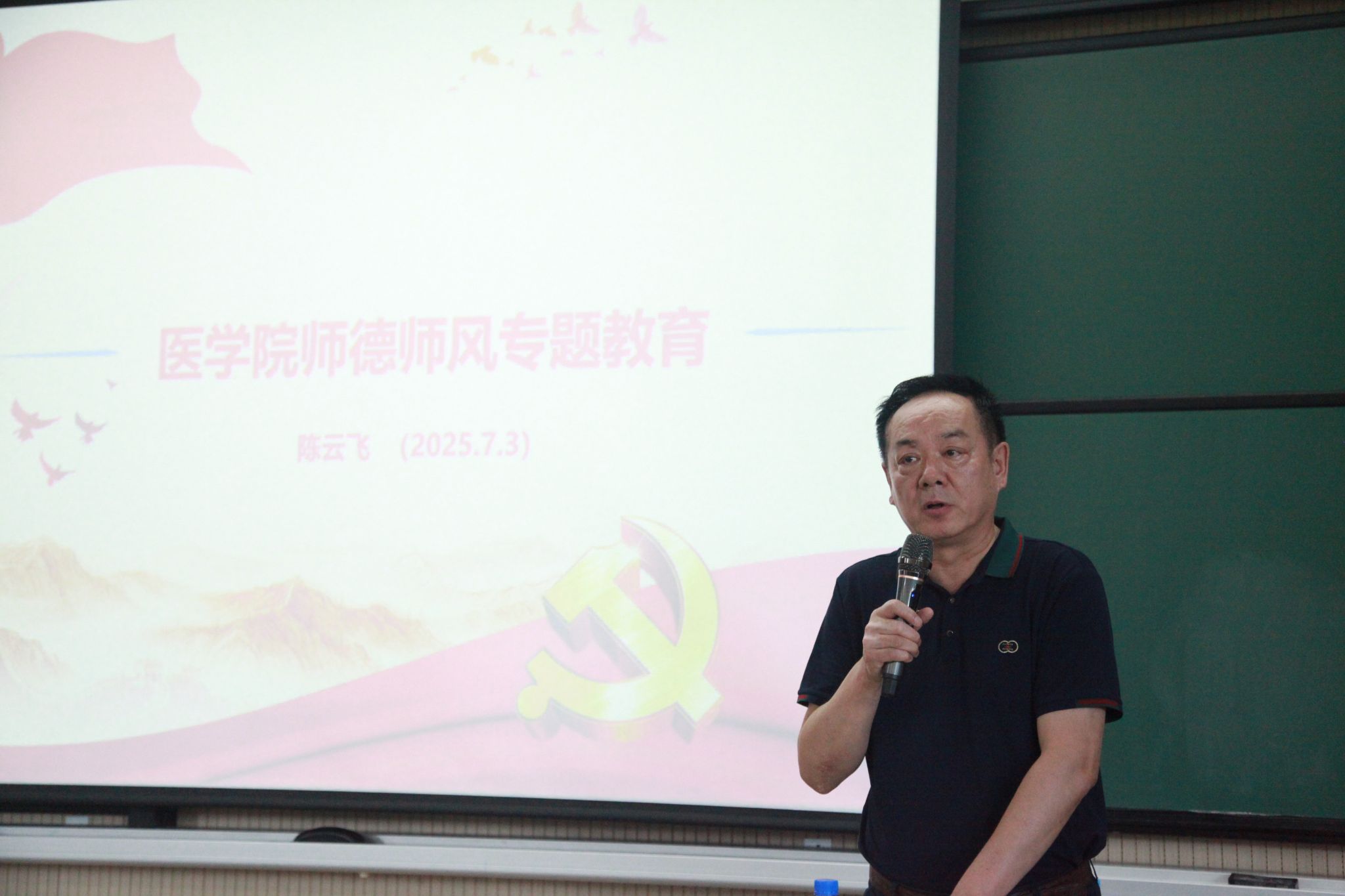 党委书记陈云飞主持会议并领学了师德师风建设相关文件与精神,结合深入贯彻中央八项规定精神学习教育进行了典型案例剖析。全院教职工参加学习。