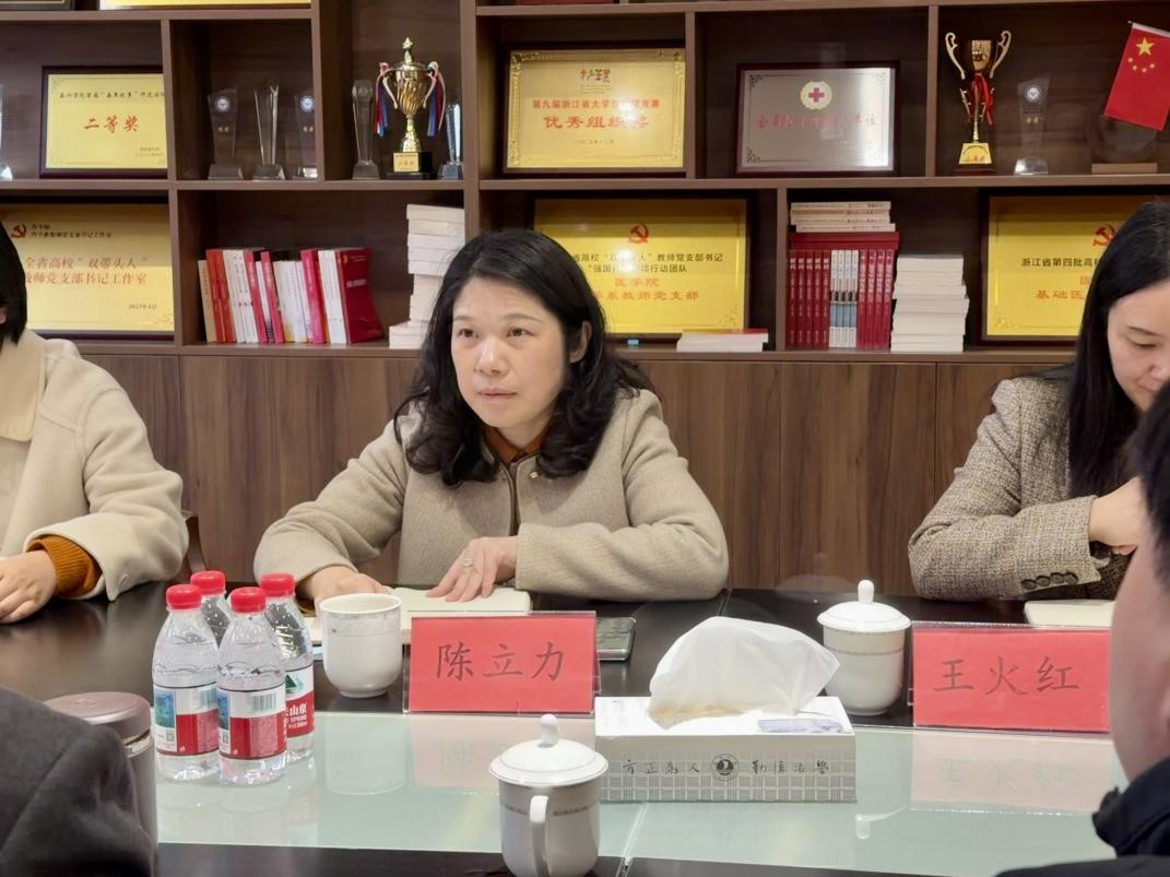 陈立力认真听取各项工作汇报,详细询问了工作中存在的问题和遇到的困难,对学院在党的组织建设、人才培养成效、宣传思想文化、学生教育管理、安全稳定等方面的工作给予了充分肯定,并对下一步工作提出要求。她强调,学院要立足“十五五”发展规划开局之年,深度融入时代发展脉搏,凝聚高质量内涵式发展共识,进一步提高思想站位、拓展视野格局、开放思维胸怀,统筹协调发展和安全的关系,不断提升医学人才培养的精度、效度、温度。她要求学院要持续探索“本硕一体化”人才培养模式,深入推进医学人才培养方案改革;要立足办学历史和经验,进一步弘扬优良传统,突出自身优势,持续推进具有医学特色的育人模式走深走实,创新打造思想政治教育工作品牌;要充分发挥校地协同作用,加强社会合作与成果转化,为加快建设有特色、善创新的综合性高水平大学贡献“嘉医”力量。